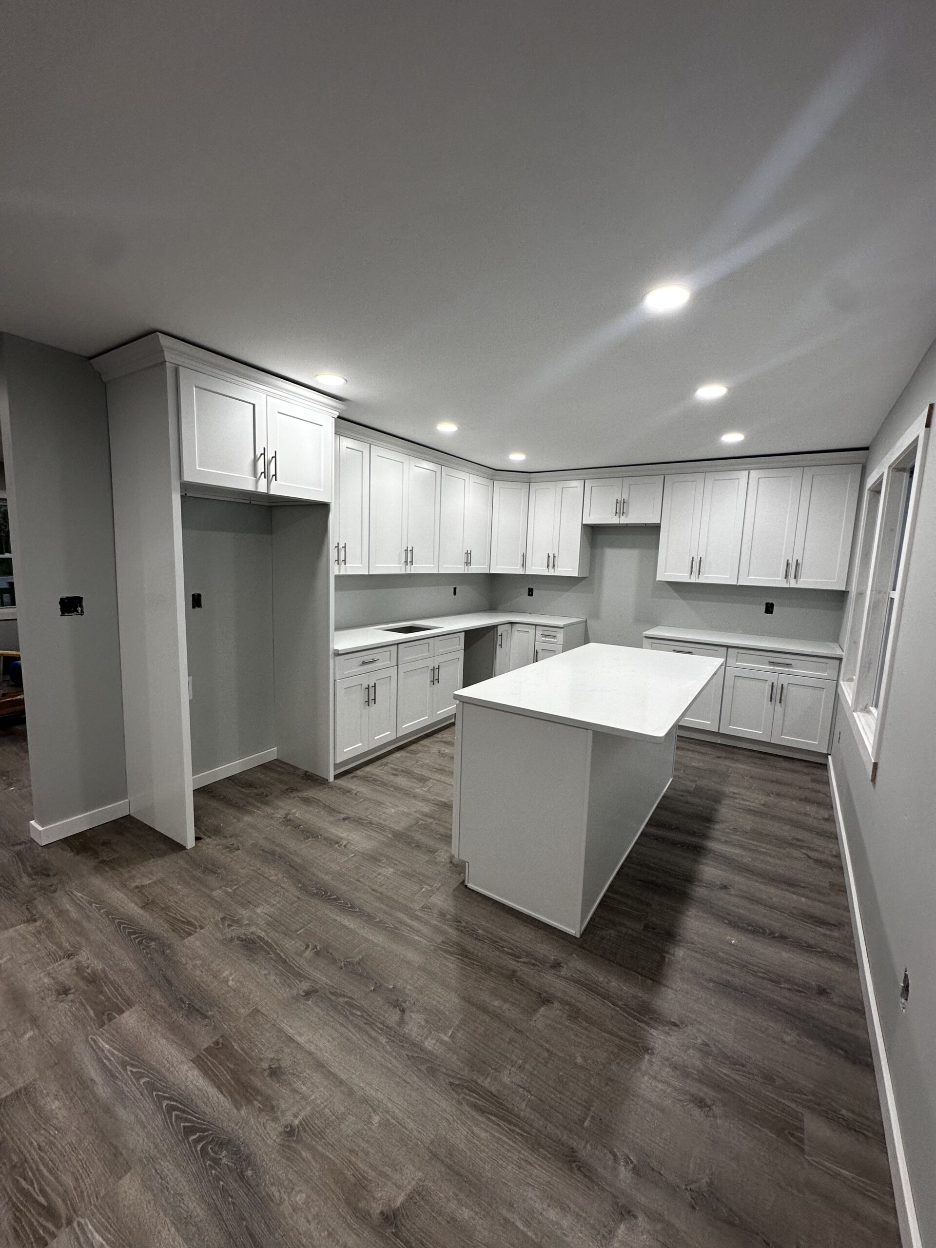 Custom Cabinetry, Countertop Installation, Backsplash Design, Flooring, Lighting, Plumbing & Electrical Upgrades, Layout Redesign, and Full Kitchen Remodeling.